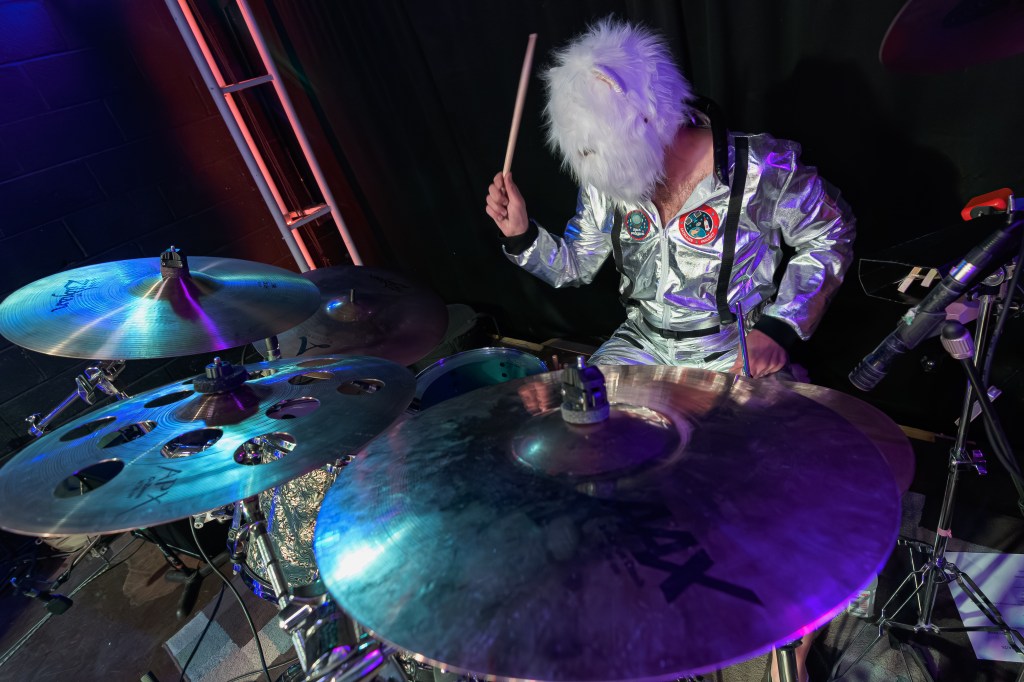 Kendall Shew (drums): Boise-born and raised. A drum corps alum, music promoter, and instructor, Kendall brings the drive—and the goofiness—that keeps us moving and laughing.